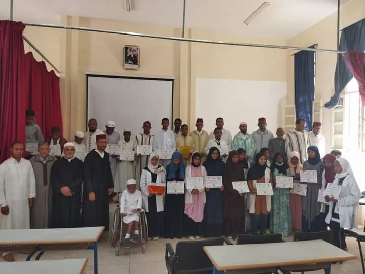 تنزيلا لتوجيه المكتب الوطني ، وتزامنا مع الاحتفال باليوم الوطني لمادة التربية الاسلامية، أسدل الستار عن المسابقة النهائية في تجويد القرآن الكريم فئة التعليم الإبتدائي يوم الجمعة27 رمضان1443هجرية بمدرسة الأنوار الابتدائية .فيم تم اجراء المسابقة النهائية لتجويد القرآن الكريم (فئة الثانوي الإعدادي والثانوي التأهيلي) يوم السبت 38 رمضان 1443 بتنسيق بين فرع الجمعية المغربية لأساتذة التربية الإسلامية ، والمجلس العلمي المحلي لزاكورة….وقد عقد اللقاء بفضاء الثانوية التأهيلية المجد، وحضرته عديد من الشخصيات المباركة يتقدمها السيد رئيس المجلس العلمي المحلي لزاكورة ذ. عبد الرحمن المتقي، مع ثلة فاضلة من السادة أعضاء المجلس العلمي المحلي، وأعضاء الفرع الإقليمي للجمعية م أ ت إ. بالإضافة إلى السادة الآباء وأولياء الأمور وجماعة من المتعلمين والمتعلمات.